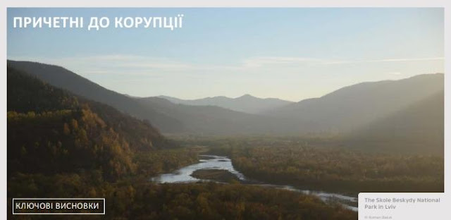 - В даний час ведуться гучні кримінальні справи щодо корупції в масштабах двох з трьох найбільших лісозаготівельних регіонівГоловного лісівника в іншій області, в Українських Карпатах, спіймали на гарячому у жовтні 2017 року при спробі підкупу поліції, щоб та закрила очі на масштабні правопорушення. Корупція на місцевому рівні щодо продажу деревини для внутрішньої переробки, тим часом, годує зростаючу «тіньову деревообробку» в понад 12 000 незаконних тартаків.