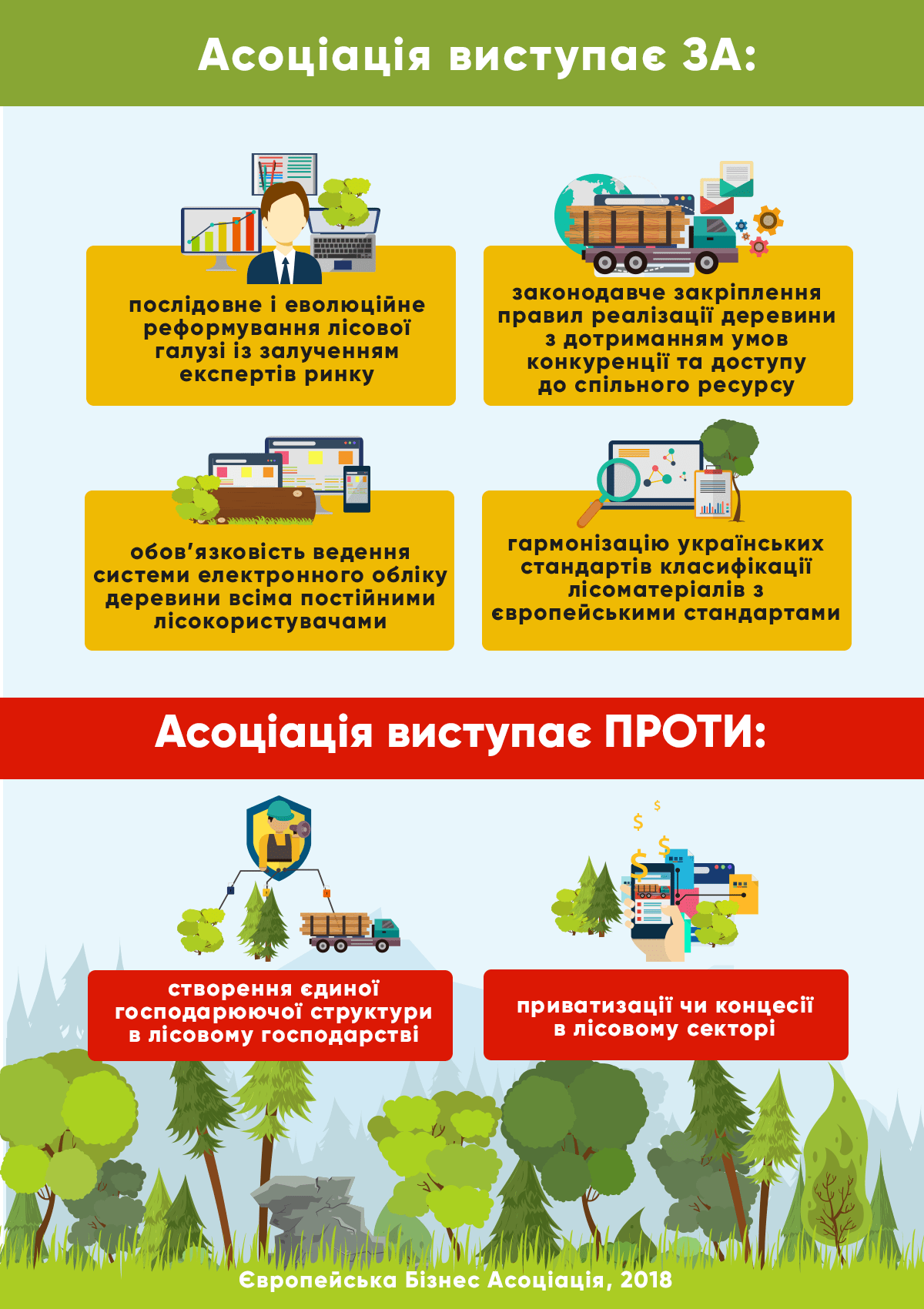 Європейська Бізнес Асоціація надіслала звернення до Прем’єр-міністра України та Міністерства аграрної політики та продовольства України, у якому бізнес надає пропозиції щодо врегулювання ключових проблемних питань для деревообробної галузі. Ми спостерігаємо увагу інвесторів до даної галузі і готовність розвивати глибоку переробку лісу в Україні. Однак у разі, якщо робота на ринку не буде належно налагоджена – ці плани опиняться під загрозою.