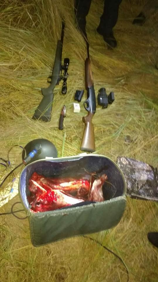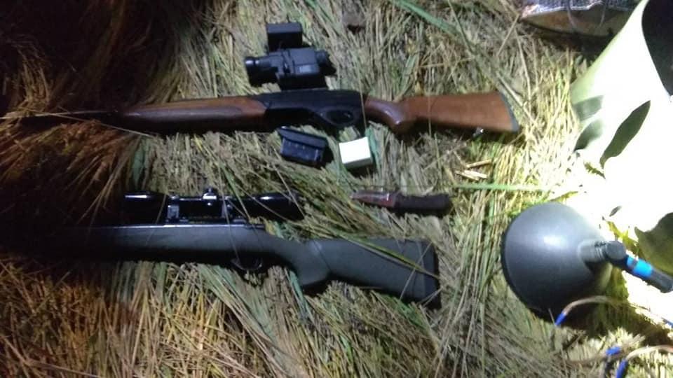 Водій і пасажир позашляховика – мешканці Києва, а супроводжував їх місцевих єгер. Під час огляду автомобіля охоронці лісу знайшли два зареєстровані карабіни, лампу-фару, тепловізор та портативний холодильник, в якому знаходилось три туші зайців. Всі троє затриманих перебували в стані алкогольного сп’яніння, чинили опір та погрожували зброєю. На місце події представники рейдової групи викликали працівників поліції і вже у їхній присутності брали пояснення.