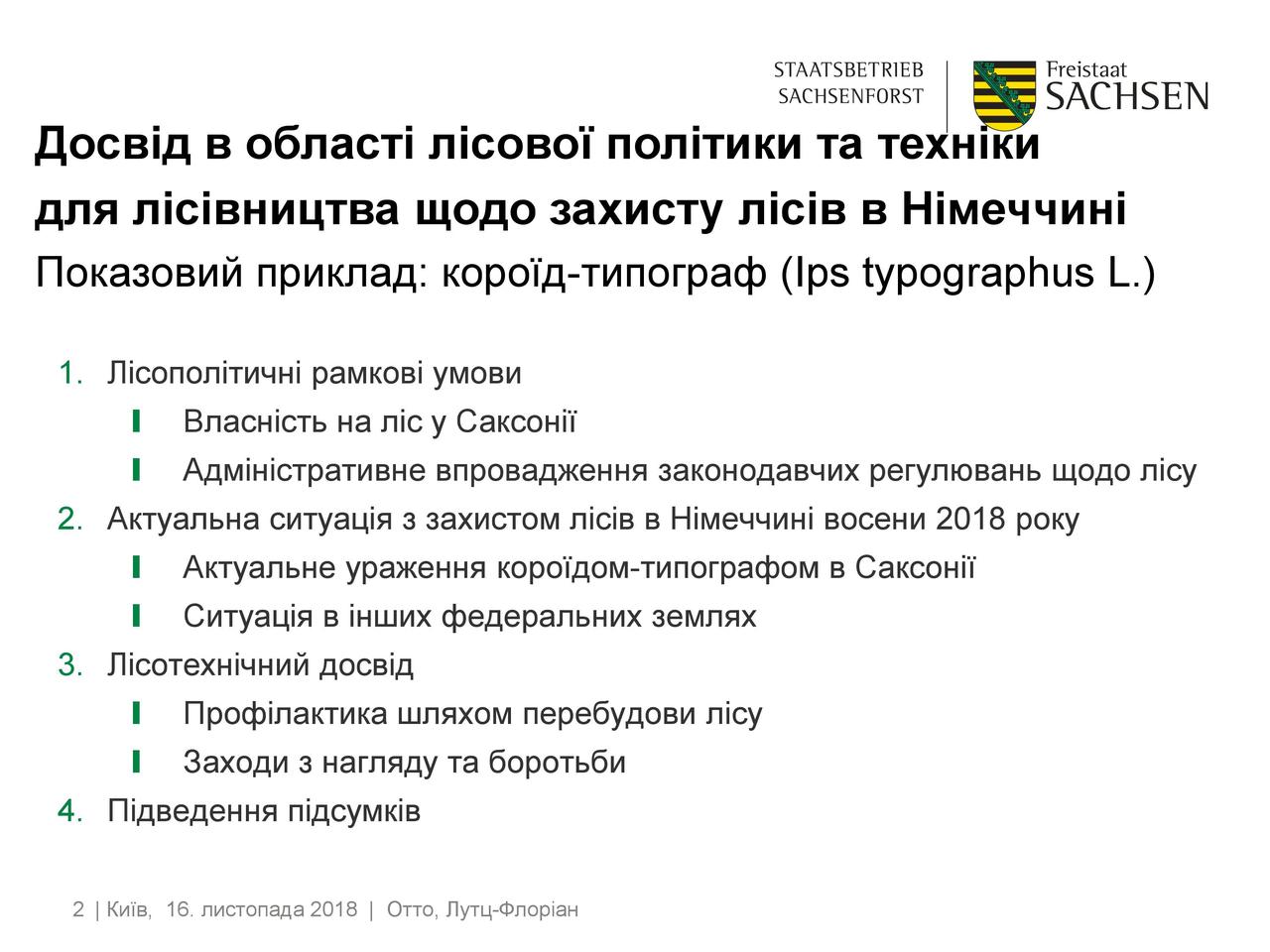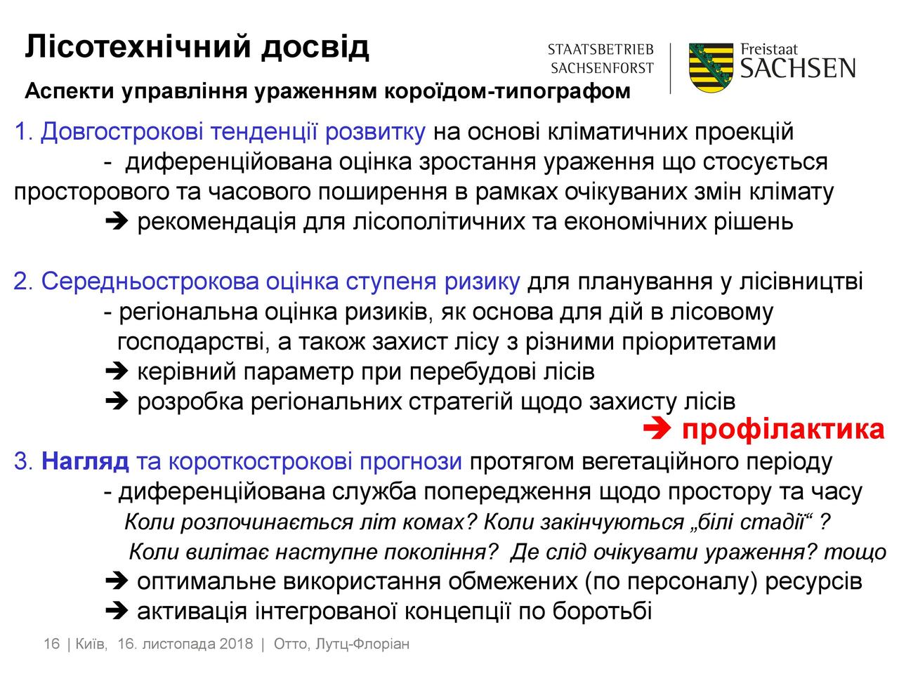 В прошедшую пятницу в рамках программы агрополитического диалога Германии и Украины было проведено очень интересное и полезное мероприятие. Я расскажу о нем позднее, а пока познакомлю Вас с презентациями, которые стоят того, чтобы их внимательно изучить. Если у Вас возникнут вопросы, – пишите в комментариях. Мы попытаемся получить на них ответы непосредственно у докладчиков. Ниже презентация Лутц-Флориана Отто, отвечающего за лесозащиту в государственном предприятии “Саксонский лес”. Его отчет размещен на сайте, но презентация его не дублирует, а развивает. М.П.