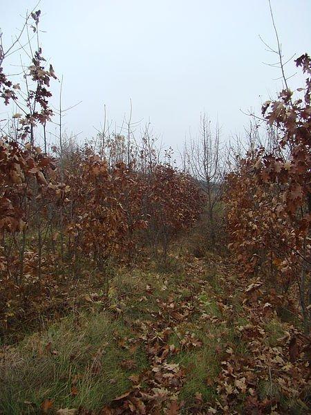 Інша ділянка, створена цього ж року – лісові культури дуба звичайного, на площі 7 га (68 квартал Радянського лісництва). Одразу ж можна порівняти на прикладі цих ділянок відмінність між породами дубів – вони «однолітки», але дуб звичайний набагато повільніше росте. Однак кидаються ввічі рівні рядочки, які переконають і недосвідченого спостерігача, що приживлюваність цих культур була високою, що ці насадження створювалися людськими руками і доглядалися з любов’ю до лісу!