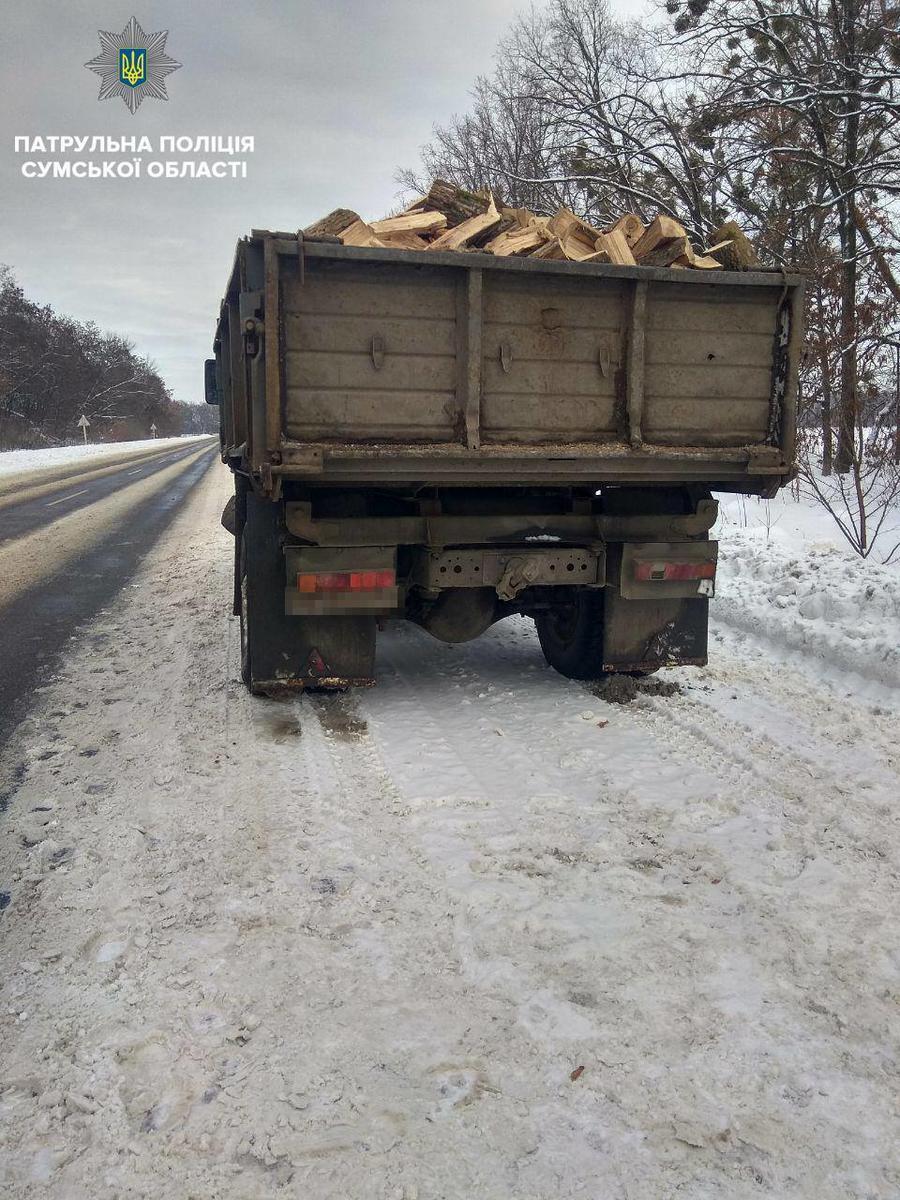 Під час патрулювання відрізку автодороги Н-07 «Київ — Суми — Юнаківка», у селі Верхнє Піщане, за порушення ПДР екіпаж патрульних зупинив транспортний засіб ЗІЛ, у кузові якого знаходилася деревина.