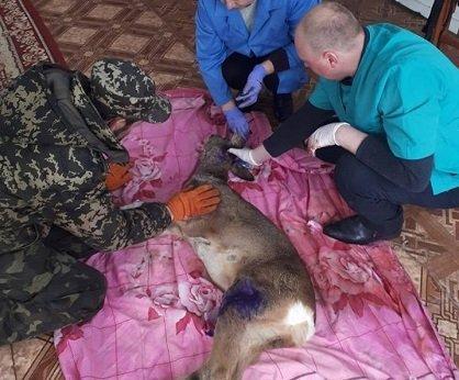 До лісництва негайно прибув старший єгер Вигодського лісгоспу Іван Микуляк та разом з Андрієм Ничем. Вони автомобілем доставили знесилену козулю у Долинське відділення ветеринарної медицини, де черговий лікар визначив поранення ноги і шиї, як кульові та провів відповідні хірургічні операції, зашив та обробив рани.