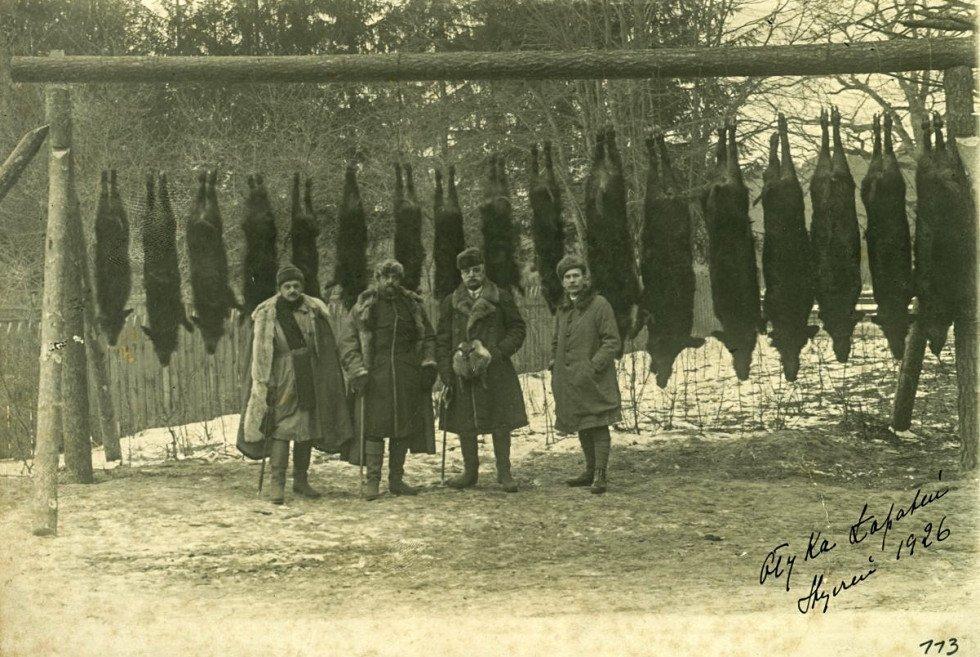 На фото можна побачити мисливців, здобич та частування на природі. На одному із фото 1910-х років, можна впізнати олицького князя Януша Радзивілла, біля якого сидить його дружина Анна Марія Любомирська.