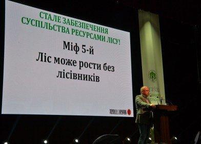Його виступ був виваженим, змістовним, у міру лаконічним. Говорив про те, що болить йому особисто і всій лісівничій громадськості. Розповідав, що вдалося зробити і чого домогтися після вересневого форуму. Ось головні меседжі, висловлені зі з’їздівської трибуни у Волинському академічному обласному українському музично-драматичному театрі імені Т. Г. Шевченка (до речі, глядацька зала була прикрашена світлинами та гаслами на лісівничу тематику).