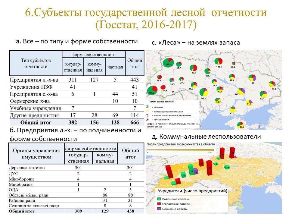 Другим источником информации о структуре собственности является реестр субъектов хозяйствования, подающих государственную отчетность о лесохозяйственной деятельности (слайды 6-7).