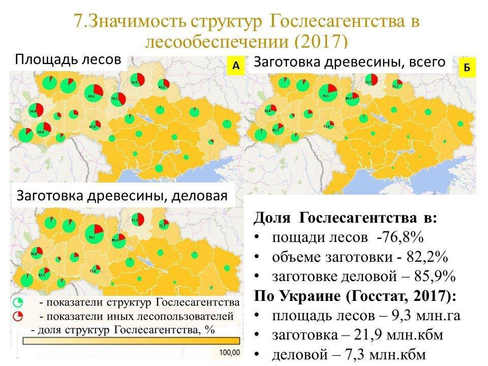 Фактически государственные леса Украины имеют одного собственника – ГОСУДАРСТВО, 24 – основных распорядителя – ОДА, и около 400 постоянных пользователей – собственников заготовленной древесины и доходов, полученных для её реализации.