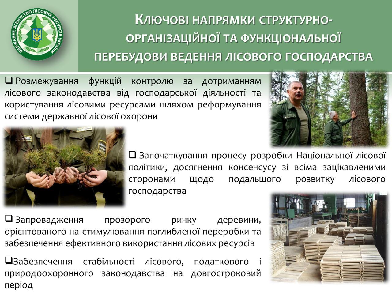 Друге: Завершення розмежування повноважень щодо здійснення державного контролю та господарювання шляхом реформування системи державної лісової охорони.