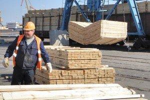 Если лесхозы грузят по одному пакету, то в порту выгружают по два, а то и по четыре сразу.