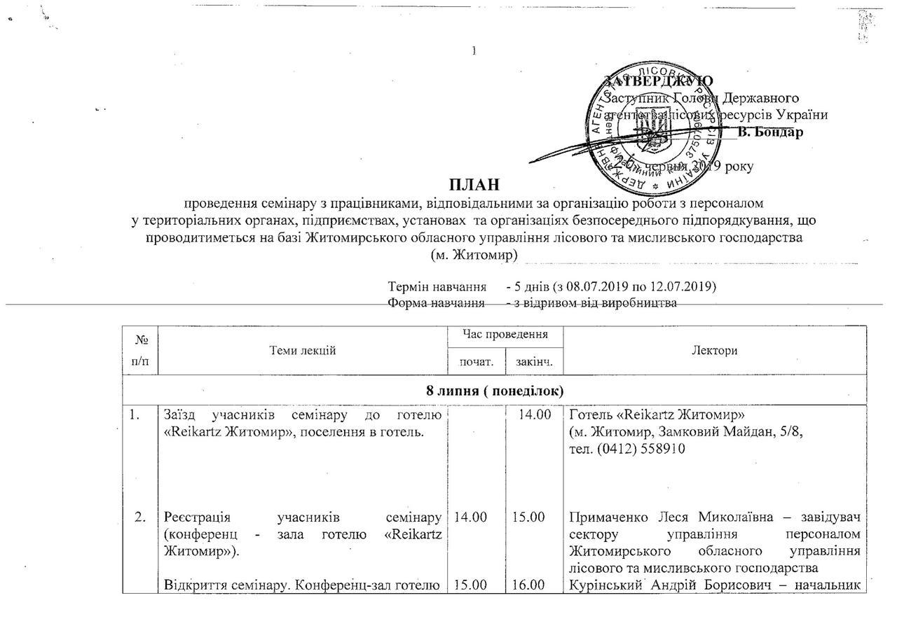 липень 2017- Закарпаття, липень 2018- Суми, липень 2019- Житомир – час та місце проведення п’ятиденних семінарів для працівників кадрових служб Держлісагенства.