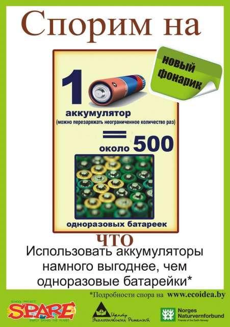 На любой батарейке или аккумуляторе есть значок в виде перечеркнутого мусорного контейнера, который служит напоминанием о том, что их нельзя выбрасывать вместе с другими отходами. Использованные батарейки содержат тяжелые металлы, которые загрязняют окружающую среду. Одна пальчиковая батарейка может отравить 1 кубометр почвы или 400 литров воды.