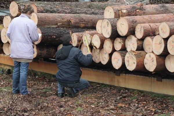 Проведение измерений круглого леса на нижнем складе