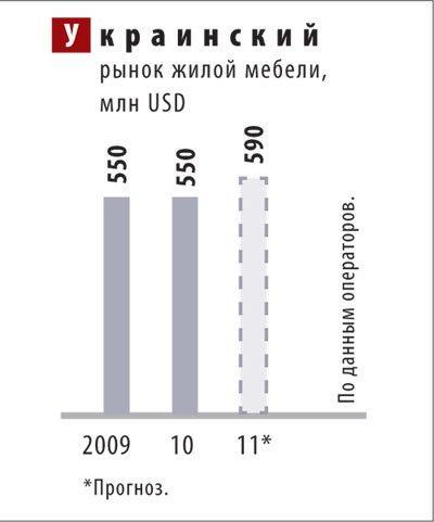 Впрочем, есть на рынке предприятия, которые в январе — сентябре 2011 г., по сравнению с аналогичным периодом 2010 г., увеличили объемы реализации более чем на 20% в количественном выражении, в то время как, по словамг-на Пригорницкого, “некоторые участники рынка, наоборот, “упали” на 10-15%”. [Украинский рынок жилой мебели, млн USD]