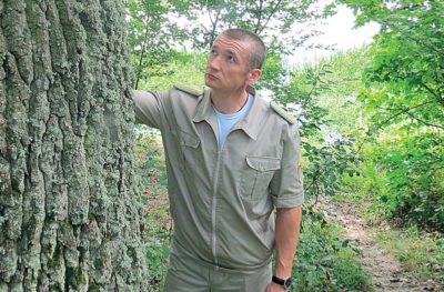 Директор Радомишльського лісомисливгоспу Іван Дмитренко: «Такі дуби ростуть на берегах річки Тетерів, мимо них стежками ходять на водопій козулі»
