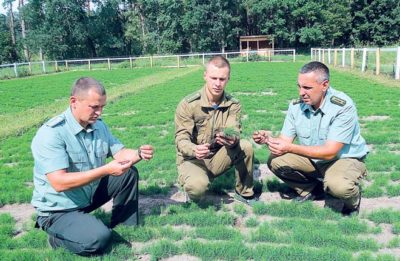 Начальник відділу лісового господарства підприємства Віктор Масний, помічник лісничого Олександр Гальченко і лісничий Сергій Онуфрійчук у розсаднику Білківського лісництва