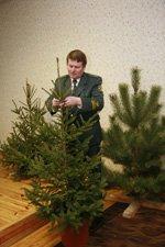 зібрала представників місцевих ЗМІ у Чернігівському обласному управлінні лісового та мисливського господарства. В ній взяли участь – його начальник Валерій Лозицький , начальник екологічної інспекції в Чернігівській області Леонід Бурковський та начальник державного управління охорони навколишнього природного середовища в нашому регіоні Сергій Горонович. Валерій Лозицький проінформував журналістів, як сіверські лісівники підготувалися до передсвяткової реалізації ялинок. Він запевнив, що зеленого товару вистачає всім бажаючим. Адже Чернігівщина стала своєрідною українською "ялинковою житницею". Ялини та сосни прикрашатимуть не лише домівки мешканців Сіверського краю, а й по всій Україні реалізовуються. В ролі основних поставщиків виступили Корюківський, Добрянський, Остерський та Борзнянський держлісгоспи. А Володимир Перев'язко, головний спеціаліст Чернігівського ОУЛМГ, повідомив про "ноу-хау" в реалізації новорічних красунь. Звісно, всі зацікавлені, щоб споживачі купували ялину чи сосну "законного походження". Отож на цих деревах закріплюється електронний чіп. Володимир Перев'язко і продемонстрував перед журналістською аудиторією, як саме цей чіп кріпиться. Відповідаючи на запитання аудиторії, три керівники розповіли, як їх відомства спільно працюватимуть в рейдових бригадах по виявленню незаконних сосон та ялин. Підкреслювалося, що учасники цих бригад визначатимуть не лише походження новорічного дерева, а й той факт, чи є на ялину (сосну) документи про пройдений радіологічний контроль. ( Мова – про радіологічну безпеку новорічної красуні у наших домівках). Валерій Лозицький зазначив, що всі рейдові групи забезпечені спеціальними електронними сканерами. Ці пристрої розпізнають електронний чіп. Валерій Григорович теж продемонстрував, як саме сканер "читає" електронний чіп. І представники МВС підключилися до новорічної співпраці, тому що ідеться про безпеку на дорогах. Зауважимо, московською трасою через Чернігівщину транспортуються ялини з Сумської області. Насамкінець, були названі новорічні ялинкові чернігівські базари , які облаштовані на ринках – Привокзальному, Центральному та "Ниві".