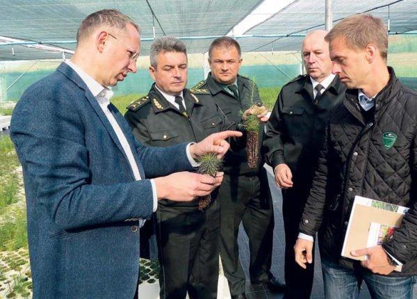Неабияку зацікавленість господарів викликала робота шведської автоматизованої лінії, яка за зміну здатна закласти 300 тис. шт сіянців із закритою кореневою системою. Справа в тому, що торік у Скала-Подільському лісництві відкрили павільйон з автоматичним притіненням, розрахований на плекання 180 тис. шт сіянців, нині працюють над розширенням його, аби перевести вирощування на конвеєр і таким чином забезпечити потреби всієї області у садивному матеріалі із ЗКС. За участю начальника Тернопільського обласного управління лісового і мисливського господарства Олега Яремка, головного спеціаліста відділу лісового та мисливського господарства, охорони і захисту лісів облуправління Надії Козацької, директора ДП «Чортківський лісгосп» Василя Фреяка, спеціалістів підприємства, лісничих відбулася зацікавлена розмова про перспективи співпраці з компанією ВСС. Крім Скала-Подільського лісництва гості відвідали Колиндянське лісництво, яке спеціалізується на декоративному садивному матеріалі, ознайомилися з об’єктами постійної лісонасіннєвої бази. Андреас Бернер та Евалдас Блажевічіус дали схвальну оцінку вирощуванню сіянців із закритою кореневою системою в Чортківському лісгоспі, відзначили їхню високу якість. Про досвід господарства – подальша розповідь.