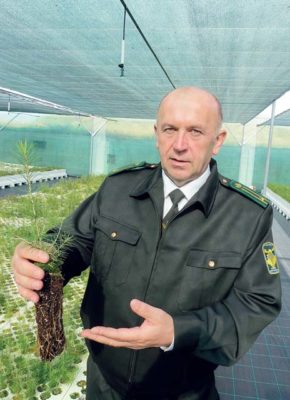 Дещо конкретніше про нього. Знайомлячись із досвідом польських лісівників, Володимир Гайовський звернув увагу на навіс притінення для вирощування сіянців із ЗКС. За короткий термін навіс, що реагує на активність сонця і при підвищенні температури автоматично закривається, було збудовано в лісництві. У ньому все – від поливу до притінення – автоматизовано. Тепер у контейнерах із різними субстратами вітчизняного та частково естонського виробництва плекають сіянці не тільки дуба звичайного, а й сосни звичайної, модрини європейської, забезпечуючи майже повністю (на 80%) потреби виробництва у них.