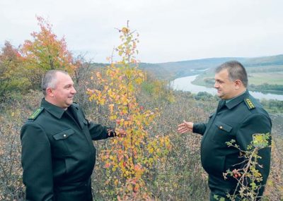 Який ти прекрасний, Дністре! На крутосхилому березі, засадженому лісівниками, директор лісгоспу Василь Фреяк (праворуч) і лісничий Заліщицького лісництва Олександр Навізівський