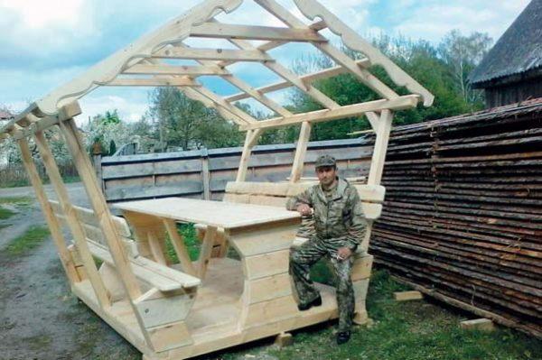Коли майстер показує світлини своїх виробів із дерева, справді, відчуваєш і розумієш його творчу художню натуру. Ось лавочка на колесах, журнальний столик із ніжками-копитами, підставка під квіти з ногами, навіть будка для собаки – незвичайна, оздоблена різьбленими деталями, а накриття для колодязів, наче казкові хатинки-теремки. Особливо цікаві ідеї-видумки вкладає у дитячі ігрові майданчики. Такі вироби тільки за власним проектом і задумом, наприклад: знизу – пісочниця, а доверху ведуть зі шнурів драбинки, для безпеки дітей – коли підійматися сходинками до спускалки, то треба спочатку обійти перегородку. А ще фантазія вирує у різноманітних дерев’яних бесідках, гойдалках, різних спорудах для облаштування і прикрашання двору, саду.