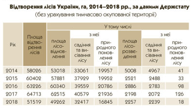 Зазначимо, що у 2018 році відтворено менше лісів, ніж у 2017-му через значне зменшення суцільних рубок під час заготівлі деревини.