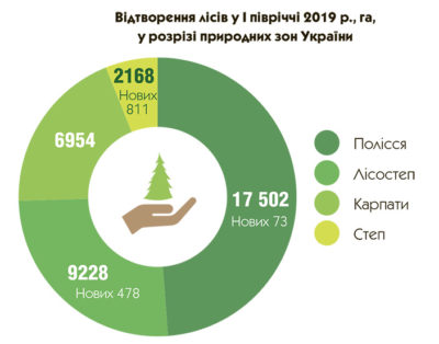 За перше півріччя 2019 року лісогосподарські підприємства відтворили ліси на площі 35852 га, з них створено нових на площі 1362 га.