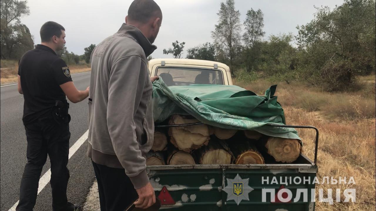 Як розповів начальник Олешківського відділення поліції Сергій Ященко, під час патрулювання мобільна група з числа поліцейських та лісників помітили автомобіль «Нива» з причепом, який на 258 км автодороги Одеса – Мелітополь виїхав з лісу на трасу та направився в напрямку с. Козачі Лагері. Причеп до транспортного засобу був завантажений деревиною. Отже його наздогнали для перевірки.