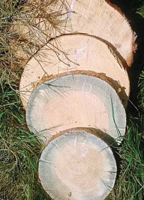 Ознаки приреченості сосни не тільки в зовнішньому прояві (зміни забарвлення кори із зеленого на салатовий), а й у внутрішньому – синизни деревини, яка розповсюджується з крони до низу, що спричинено переносниками хвороби