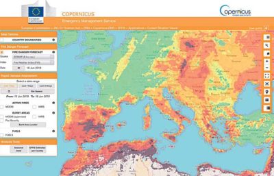 У країнах ЄС підтримкою лісового господарства опікується кілька генеральних директоратів Європейської комісії. Отримання ними постійно обновлюваної інформації про пожежі забезпечує Європейська система інформації про лісові пожежі (EFFIS) за допомогою супутників, запущених у рамках програми Європейського космічного агентства (ESA) «Коперник» (найбільша у світі програма моніторингу стану довкілля). Головне завдання EFFIS – не лише оцінка ситуацій, але й запобігання пожежам за допомогою картографування ризиків. Понад 30 країн Європейського та Середземноморського регіонів отримують інформацію від EFFIS. У 2001 році був створений так званий Механізм захисту ЄС від природних катастроф (28 країн-членів ЄС та 6 інших країн). З 2013 року керує цим механізмом Центр координації надзвичайних заходів ЄС (ERCC) (Брюссель), завдання якого – швидке реагування на стихійні лиха всередині і за межами ЄС із використанням ресурсів країн-учасниць. Сьогодні створюється спеціальний повітряний загін rescEU для порятунку людей під час масштабних лісових пожеж. Від п’ятьох членів ЄС вже надійшла авіатехніка для його організації.