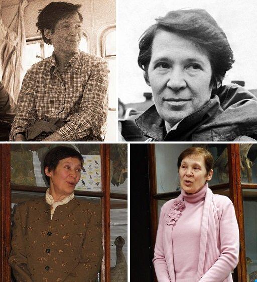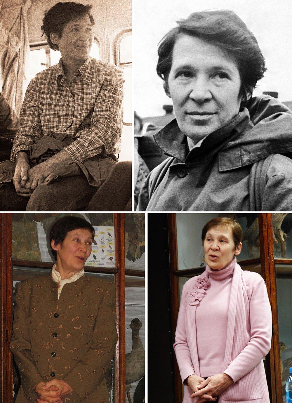 Рисунок 1. Смирнова О.В. Слева вверху. Во время экспедиции в Сабаре в августе 1979 года, Средний Урал, Артинский район Свердловской области. Фотография О.Г. Баринова. Справа вверху. Перед поездкой в Сабар в 1991 году. Фотография М.А Бариновой. Слева внизу. На защите кандидатской диссертации Натальи Евгеньевны Богдановой в МПГУ, 20 ноября 2006 г. Справа внизу. На защите кандидатской диссертации Екатерины Львовны Железной в МПГУ, 2 марта 2009 г. Фотография О.М. Железного
