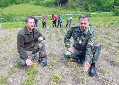 Задоволені роботою лісокультурниць у розсаднику Богданського лісництва лісничий Микола Грапинюк (праворуч) і старший майстер лісу Віктор Лучко