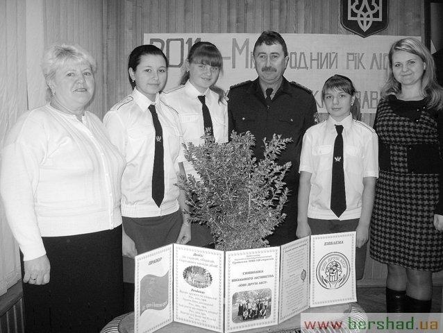 Про підсумки цієї роботи і йшла мова на урочистому зібранні «Ліс – краса й багатство краю», присвяченому Міжнародному року лісів на Бершадщині, яке проводилося в приміщенні ДП «Бершадське лісове господарство» з ініціативи Сумівської школи. В ньому взяли участь начальник відділу освіти РДА Л.І. Дзюбенко, начальник прес-служби Вінницького обласного управління лісового та мисливського господарства С.Т. Вовк, директор ДП «Бершадське лісове господарство» М.В. Краснєєв, директор Бершадської станції юних натуралістів З.П. Панченко, учні та учителі, які відповідають за природоохоронну роботу.