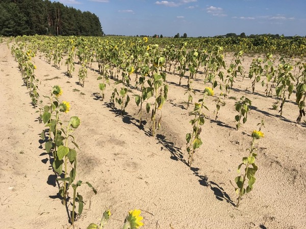 На фото – зрубані самосійні ліси та посадка соняшнику в піску на місці колишньного самосійного лісу, Чернігівщина: