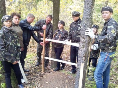 Лісничий Сумського лісництва Роман Чубун і керівник учнівського лісництва «Паросток» Світлана Ніколенко з юними вихованцями під час практичних занять у лісі