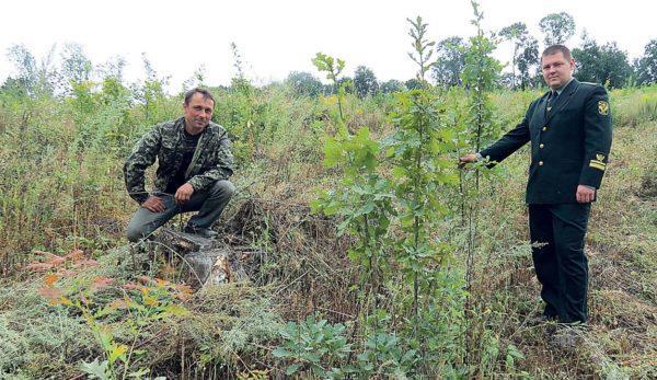 Пригадую, як під час першої поїздки до «сумських Карпат» в урочищі «Микільська дача» спостерігав за роботою колективу механізаторів приватного підприємця Романа Гирявенка на розробці лісосіки. Тоді Роман показав залишки від пеньків на сусідньому схилі й рядки дерев: «Три роки тому зрубали ясени і зразу ж посадили дубки. Гляньте, які красиві». Тепер я знову тут, вражений молодою дібровою. Оскільки ясен почав масово хворіти, на зміну ясеневим дібровам прийшли кленово-липово-дубові. Загалом пальму першості віддають дубові звичайному – щороку в тимчасових розсадниках вирощують понад 800 тис. сіянців. У Могринському лісництві звели капітальну теплицю, яка дає змогу забезпечити потреби і в доброякісному садивному матеріалі хвойних порід. Лісничі Сумського лісництва Роман Чубун і Низівського Володимир Скиртач, насадження яких переважно І групи й тягнуться вздовж річки Псел, показали прекрасні рукотворні мішані ліси на бідних піщаних грунтах. Одна зі схем посадок: 10 рядів сосни і 1 ряд дуба, обов’язково передбачені мінералізовані смуги. Догляди проводять за допомогою модернізованих РКР-1,5: аби не ламалися колеса, переїжджаючи через пеньки, замість них наварили труби. Там, де пеньки високі, а також на схилах, використовують мотокущорізи.