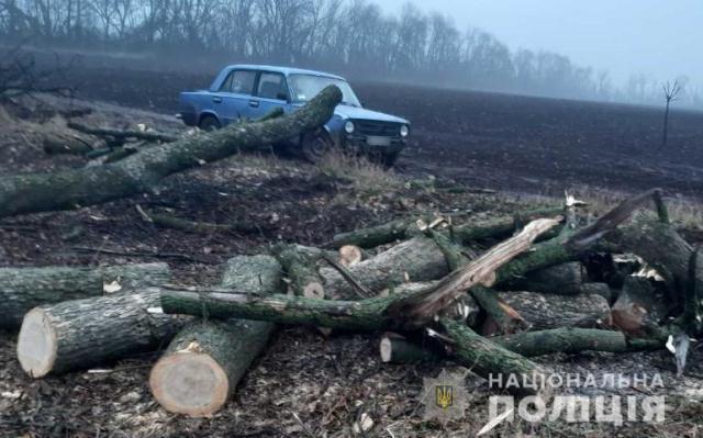 На місці події поліцейські виявили близько 120 свіжозрізаних дерев дубу та ясеню, дві бензопили та дві сокири, а також легковий автомобіль, на якому пересувалися зловмисники. Як встановили поліцейські, незаконну вирубку здійснювало троє жителів Чорнобаївського району.