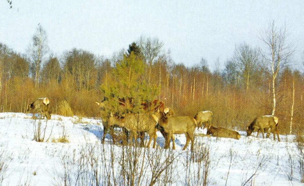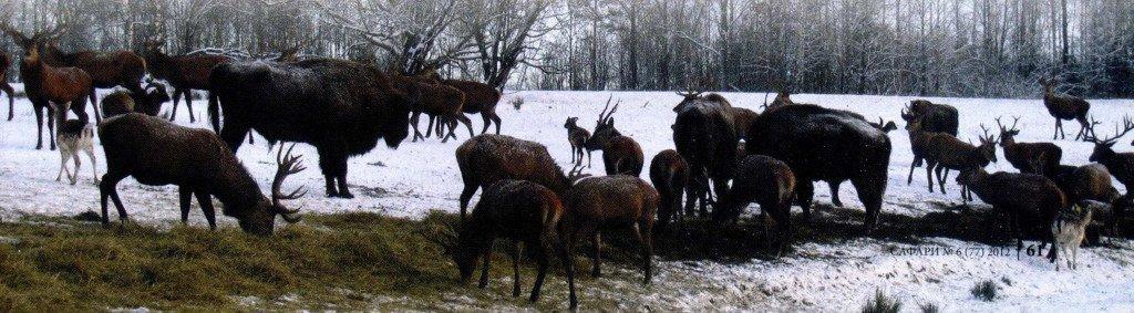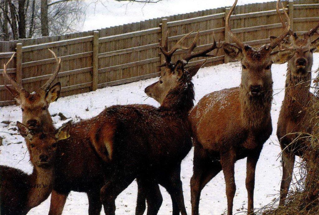 Г.Б.: У одного очень известного специалиста-бельгийца было 30 благородных оленей на 8 га. Без искусственной подкормки в Европе норма 7-8 оленей на гектар. Мы делаем следующим образом: в зоне интенсивного выращивания животных мы держим 30 животных на трех гектарах. Всего три поля по три гектара на каждую группу животных. Десять дней они на одном поле кушают травку, потом мы их перегоняем на соседнее и затем на третье. Через 20 дней на первом поле уже новая трава выросла. Проблема не в том, что они съедают траву, а в том, что они ее растаптывают. Лань кушает траву, как овца, а благородный олень — как корова. То есть языком захватил и «вжик», а лань, как овца, может откусить самый маленький отросток. Можно держать в одном месте лань и оленей, но в определенной пропорции. Лани должно быть гораздо меньше, чем благородных оленей. 10-15 ланей не смогут съесть всю траву на участке — хватит еще и на благородных оленей. А вообще-то кучу оленей можно круглый год держать на 1 гектаре голой земли и круглый год их подкармливать. Суть искусственного кормления заключается в том, чтобы подкормить самого-самого слабого.