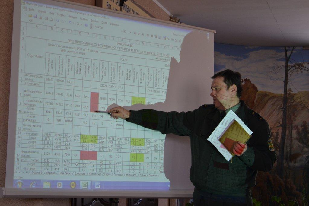 На колегії підведені здобутки 2011 року та визначені пріоритетні завдання на 2012 рік, виконання сортиментної структури заготівлі та переробки деревини. На початку засідання заступник начальника Олексій Тенянко ознайомив присутніх з головними аспектами колегії Держлісагентства та про хід виконання реформ Президента України, зокрема у сфері лісової галузі. Основним питанням стали підсумки господарсько-фінансової діяльності лісогосподарських підприємств за 2011 рік. Про них доповідала заступник начальника ОУЛМГ Олена Кійко: «В минулому році лісогосподарські підприємства працювали досить ефективно, про що свідчать основні показники їх діяльності». Реалізовано 331,2 тис. куб. м деревини від усіх видів рубок, реалізовано продукції на 113,8 млн. грн.. крім того, збільшився експорт продукції. Середньомісячна зарплата становить 2420 грн. Найвищий її рівень досягнуто у Миргородському, Гадяцькому та Полтавському лісгоспах. Продуктивність праці зросла на 48%. Про перспективи на 2012 рік доповів Олексій Тенянко, перший заступник начальника ОУЛМГ. Він зазначив, що найголовнішим завданням є вчасне садіння лісу в обсягах 1900 га, та проведення догляду на площі 14 тис. га.; збереження збалансованого рівня лісокористування, боротьба з лісовими пожежами та проведення заходів проти шкідників та хвороб лісу, проведення обліку мисливської фауни, впровадження електронного обліку деревини по ДП «Полтавський лісгосп». Завершуючи колегію, всім присутнім було висловлено побажання ефективної та плідної роботи у поточному році.