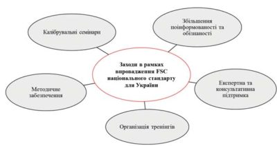 Рис. 2. Ключові заходи з метою впровадження FSC національного стандарту системи ведення лісового господарства для України