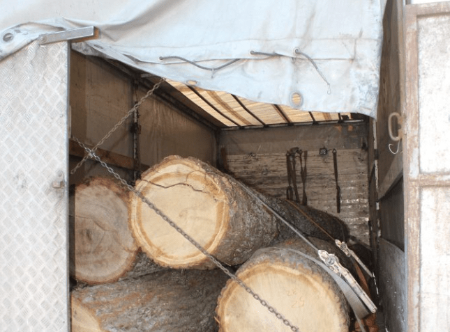 Коли вантажівку зупинили, то у тентованому кузові виявили декілька дубових колод невідомого походження, без товарно-транспортної накладної та спеціальних бирок.