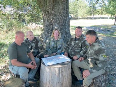 Лісничий Виступовицького лісництва Олександр Кальниченко, головний лісничий спецлісгоспу Анатолій Хомич, інженер лісового господарства Наталія Вознюк, лісничий Борутинського лісництва Микола Примак та інженер лісового господарства Андрій Яковець уточнюють план лісонасаджень