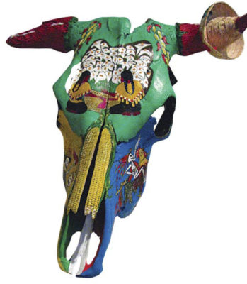 Одного разу, у Мелітополі, попросила у своєї знайомої, яка працювала на стайні, пошукати мені череп коня. Вона звернулася до хлопців, які подорожують по місцевих просторах. Через два дні до моїх ніг «впало» три мішки із черепами різних тварин. У мене був легкий шок, але дарунок оцінила. Все, звичайно, не взяла, але з деякими екземплярами черепів була дуже цікава робота. Не всі розуміють моє захоплення, але у мене біофаківський гарт і я зовсім спокійно відношуся до різного роду кісток. Але, погодьтеся, розпис на черепах дуже естетично виглядає.