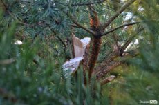 За метрів 500 від дороги і тієї самої фури видніються густо насаджені високі сосонки. Через кожні п’ять – дерева зі зрубаним верхом, а ще за декілька метрів – складена велика купа таких же.Зупинилися на галявині і Юрій Ребар почав розповідати: «Коли територію заліснювали, то це були землі запасу. У 2008–2009 роках, якщо не помиляюся, існувала державна програма задля заліснення земель, які не використовуються. Сільські ради надавали ці землі лісгоспам. Сьогодні важко коментувати, де ж ті рішення, але були виділені бюджетні кошти на ці роботи. Лісгосп територію заліснив, а тепер це все хочуть розкорчувати і використати під сільгос пугіддя. Зараз видно, що тут просто проводять заготівлю новорічних ялинок. Сьогодні можна говорити по-різному і мати різне ставлення до цих речей, можна казати, що це – не наше, ми його вчасно не оформили, не здали документів, але я розумію, що людина, яка сюди прийшла, не має жодного морального права рубати те, що кимось посаджене, те, що не твоє. Це ліс, який росте з кожним роком. Тут мали б гуляти діти, люди вже ходили збирати гриби».Директор лісгоспу каже, що якісь дії з вирубкою тут можна було б проводити не раніше ніж за років 60, коли ліс можна було б заготовляти. Тоді сільська рада отримувала б прибуток – лісовий дохід, до того часу рубати там ліс – варварство.