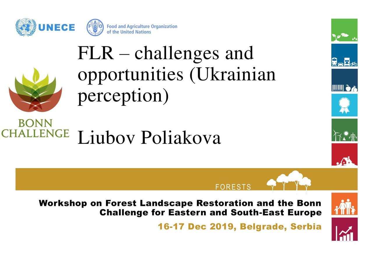 Встреча участников проекта, посвященного восстановлению лесных ландшафтов (Forest Landscape Restoration или FLR) нашего региона, состоялась 16-17 декабря в Белграде. Украину традиционно представляла Люба Полякова (даже не знаю, почему в научных и около научных лесных кругах её называют «туристкой»? Впрочем, признаю, что это достойное хобби. Доказательством этого, является хотя бы тот неопровержимый факт, что главный консультант и защитник лесной отрасли «времен нашествия варягов», – тоже турист.) Она сделала сообщение с интригующим названием «FLR – проблемы и возможности (украинское восприятие)». Презентация произвела странное впечатление, но основной вопрос один: «Кто формирует «украинское восприятие», которое получают наши европейские коллеги? Только Люба или кто-нибудь ещё? Ниже, короткая информация о проекте и презентация Поляковой. Я не стал её переводить и комментировать, чтобы каждый мог составить собственное впечатление об «украинском восприятии”. М.П.