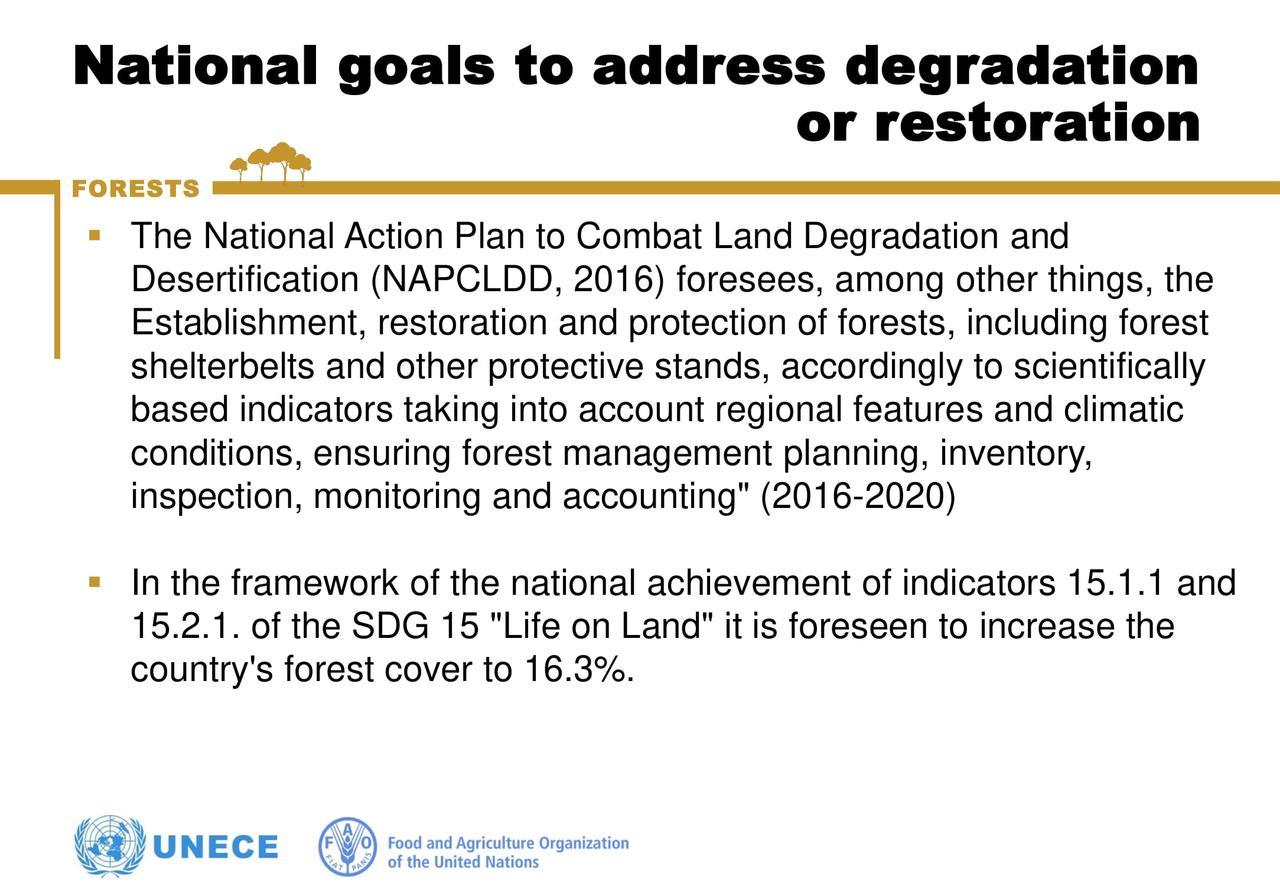 ЕЭК ООН и ФАО совместно предоставляют ключевые платформы для сотрудничества правительствам и другим заинтересованным сторонам, помогая государствам-членам в разработке комплексной политики для достижения целей в области устойчивого развития .