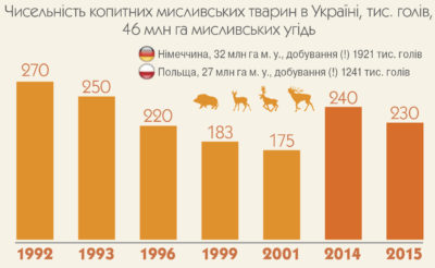 – Нині ситуація в мисливському господарстві України повертається до стану кінця 90-х – початку 2000-х років, коли економічний стан у країні погіршився, процвітало беззаконня і свавілля. Зараз, як і в ті роки, чисельність диких мисливських тварин різко знизилась, браконьєрство набирає обертів і якщо вчасно не мобілізувати зусилля та не відреагувати, ми можемо взагалі втратити мисливську галузь. У 2000-х роках, коли було створено службу районних мисливствознавців, ухвалено Закон України «Про мисливське господарство та полювання», запроваджено державне посвідчення мисливця, то це дало поштовх до поступового відновлення мисливського господарства вже з 2005 року. Але, на жаль, нам так і не вдалося наблизитись до рівня ведення мисливського господарства розвинених країн Європи. Головні причини – це економічно-неефективне ведення мисливського господарства всіма користувачами мисливських угідь, це орієнтація користувачів не на трофейне господарство (оленячих), а переважно на вразливого кабана, по якому зараз вдарила африканська чума свиней, що призвело до повної депопуляції поголів’я у 12 районах, і нарешті відсутність потужної та ефективної служби охорони.