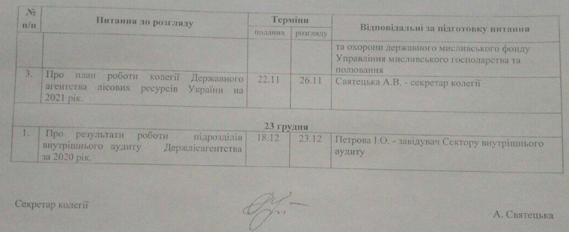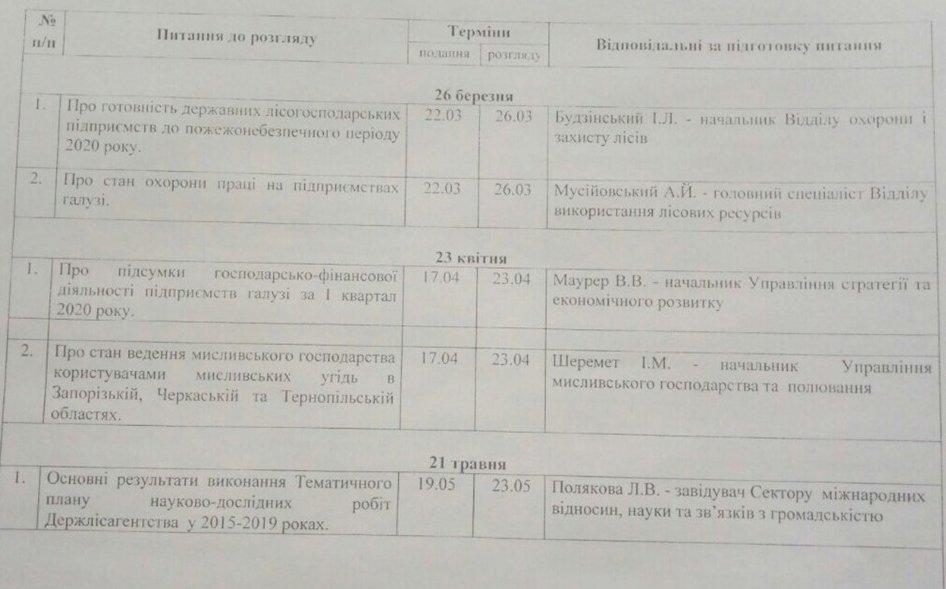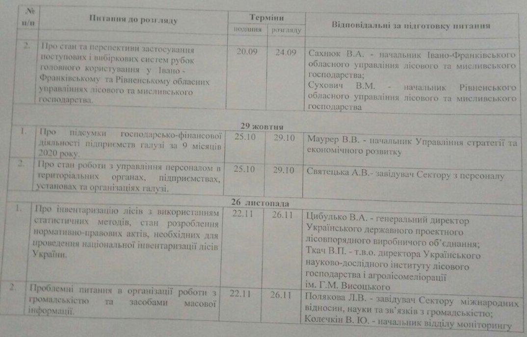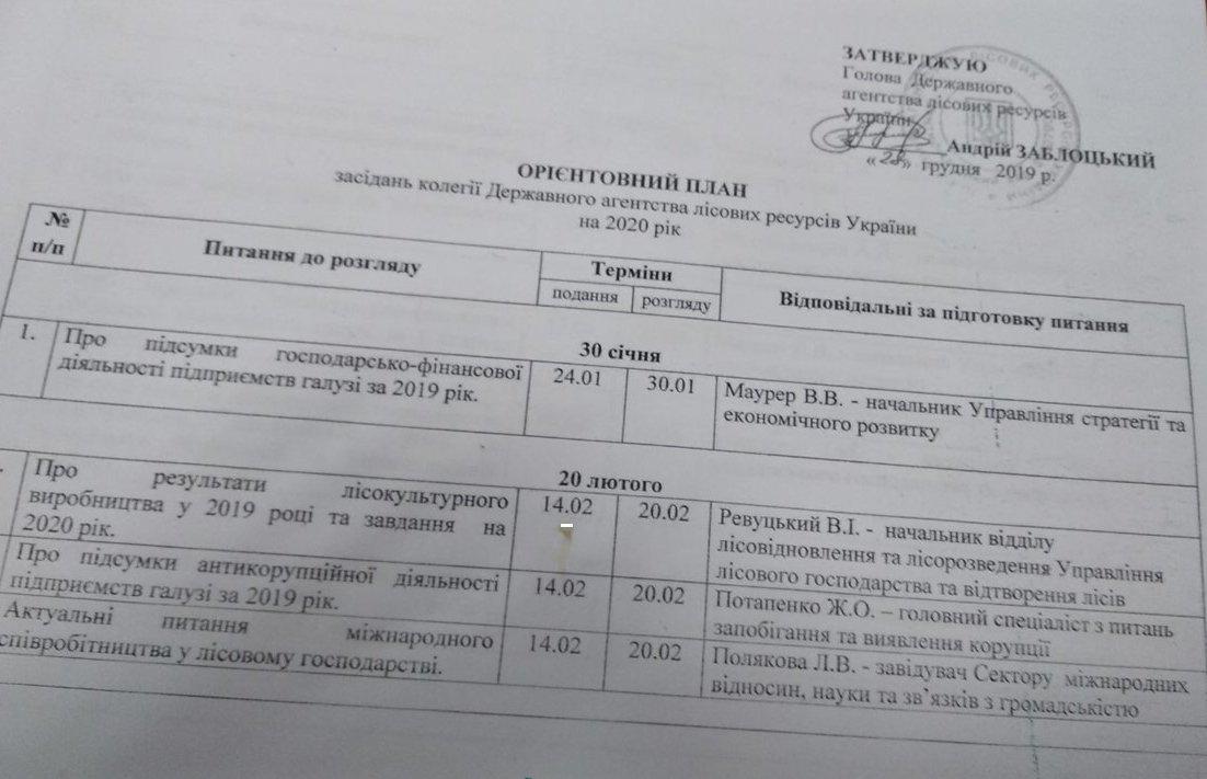 – утвержденный Заблоцким план составлен для действующей коллегии Гослесагентства состав который имеется на официальном сайте http://dklg.kmu.gov.ua/forest/control/uk/publish/article;jsessionid=4D217ACCB300F07587498A34E6D7E13C.app1?art_id=118429&cat_id=62657 (понимая что после нашей переписки его скорее всего уберут, дублирую ниже)