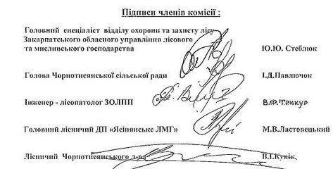 Перелік членів комісії з обстеження суцільних санітарних рубок які погодили вирубки здорового лісу в Ясінянському ЛМГ