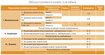 Прийоми вимірювання і характеристика надбавок та знижок при оцінюванні показників трофейних якостей іклів кабана