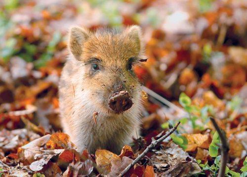 Котрийсь єгер зв’язав поросятко за лапки і закинув його собі за спину.